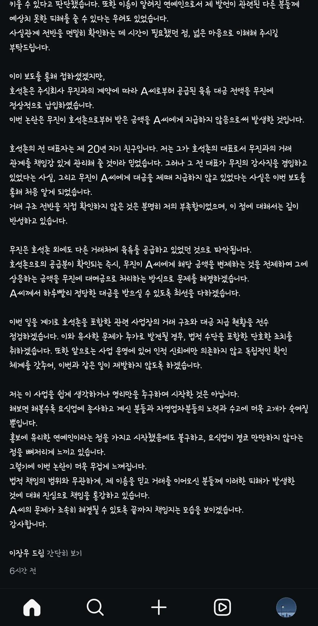 호석촌논란 이장우, 인스타 게시글