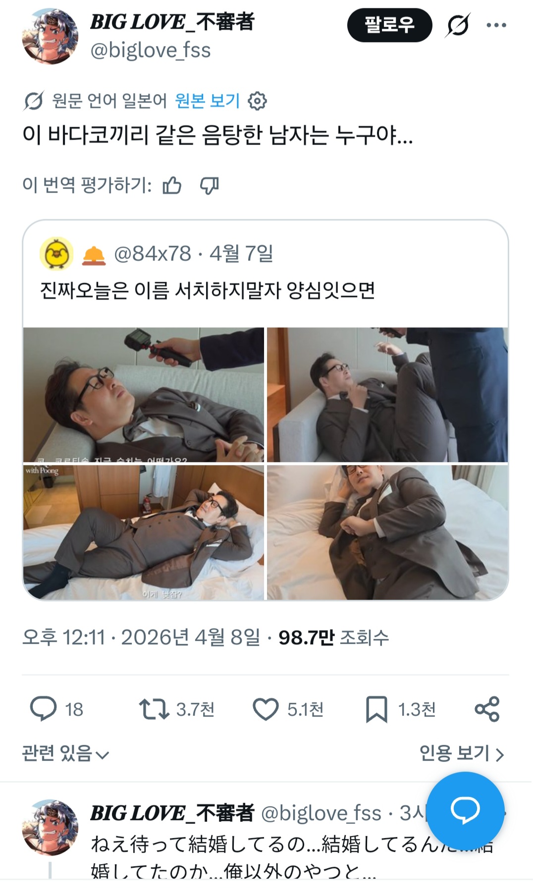 (밑트윗) 결혼했구나... 그렇구나 나말고 다른 놈과...
