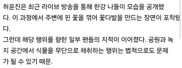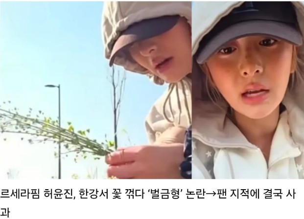 르세라핌 허윤진, 한강서 꽃 꺾다 ‘벌금형’ 논란