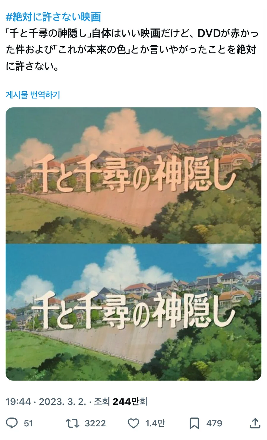"미야자키 감독의 허가를 받은 최적의 색감이다. 리콜은 없다" 며 일축하며