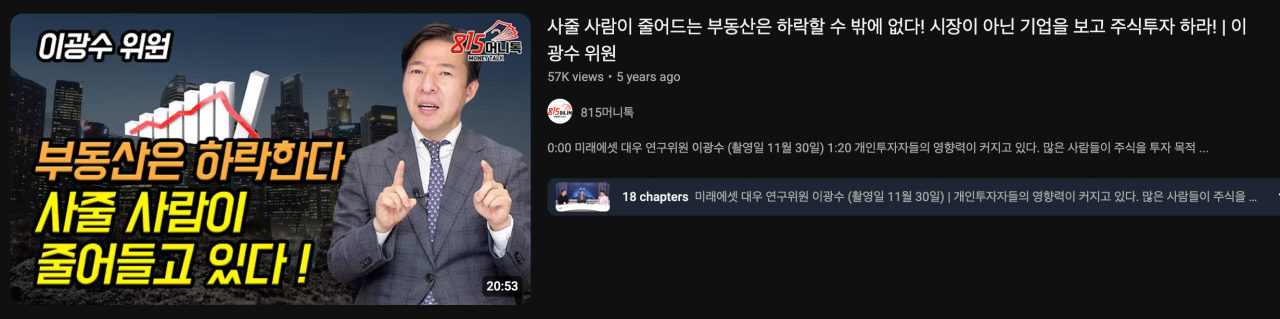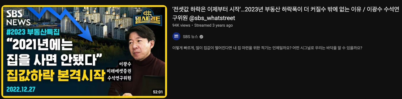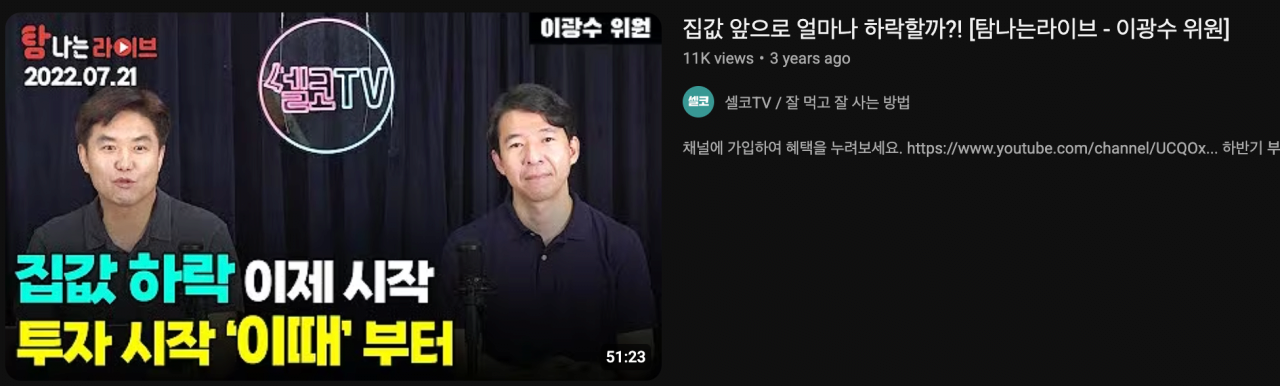 오른쪽 패널은 뭔가 부동산 하락에 큰 신념을 가진 것 같은 느낌이였는데