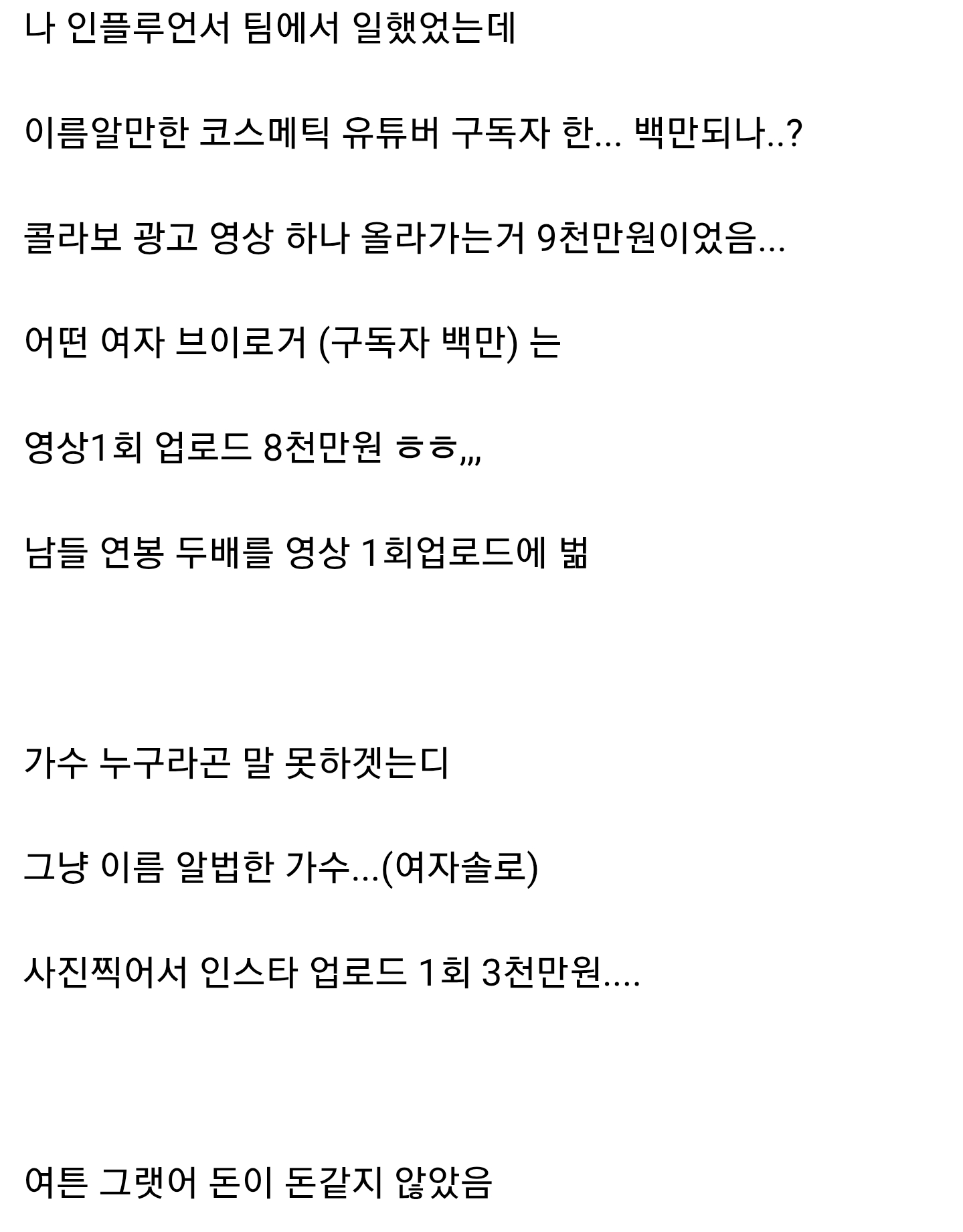 업계 종사자가 말하는 연예인, 유튜버의 광고 단가