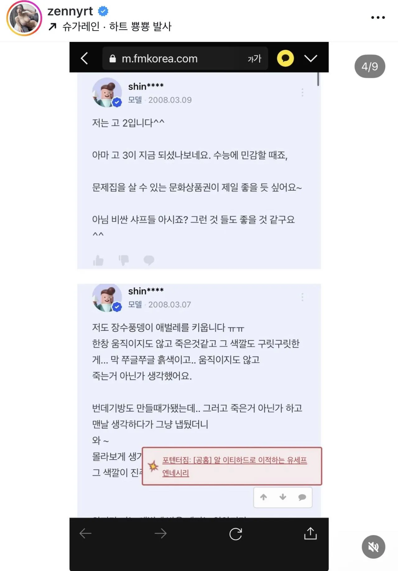 지식인 답변 강제 공개당한 신재은 인스타 반응