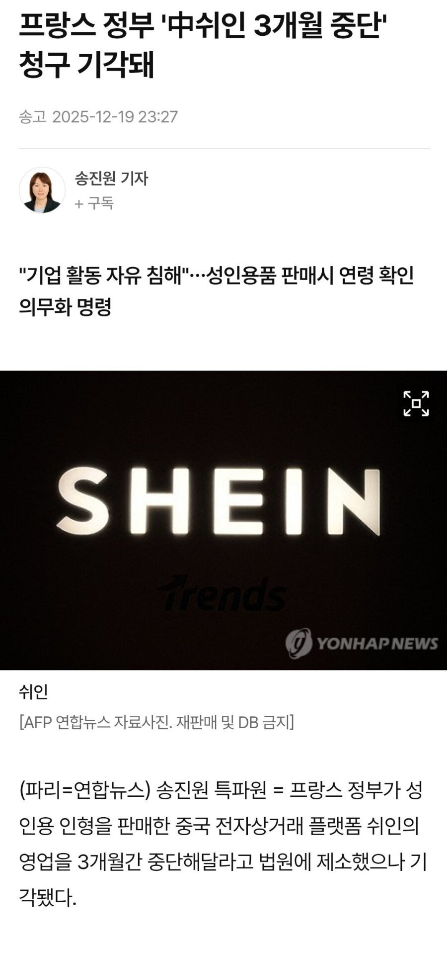 프랑스 법원도 정부가 아닌 쉬인 편 들어줌