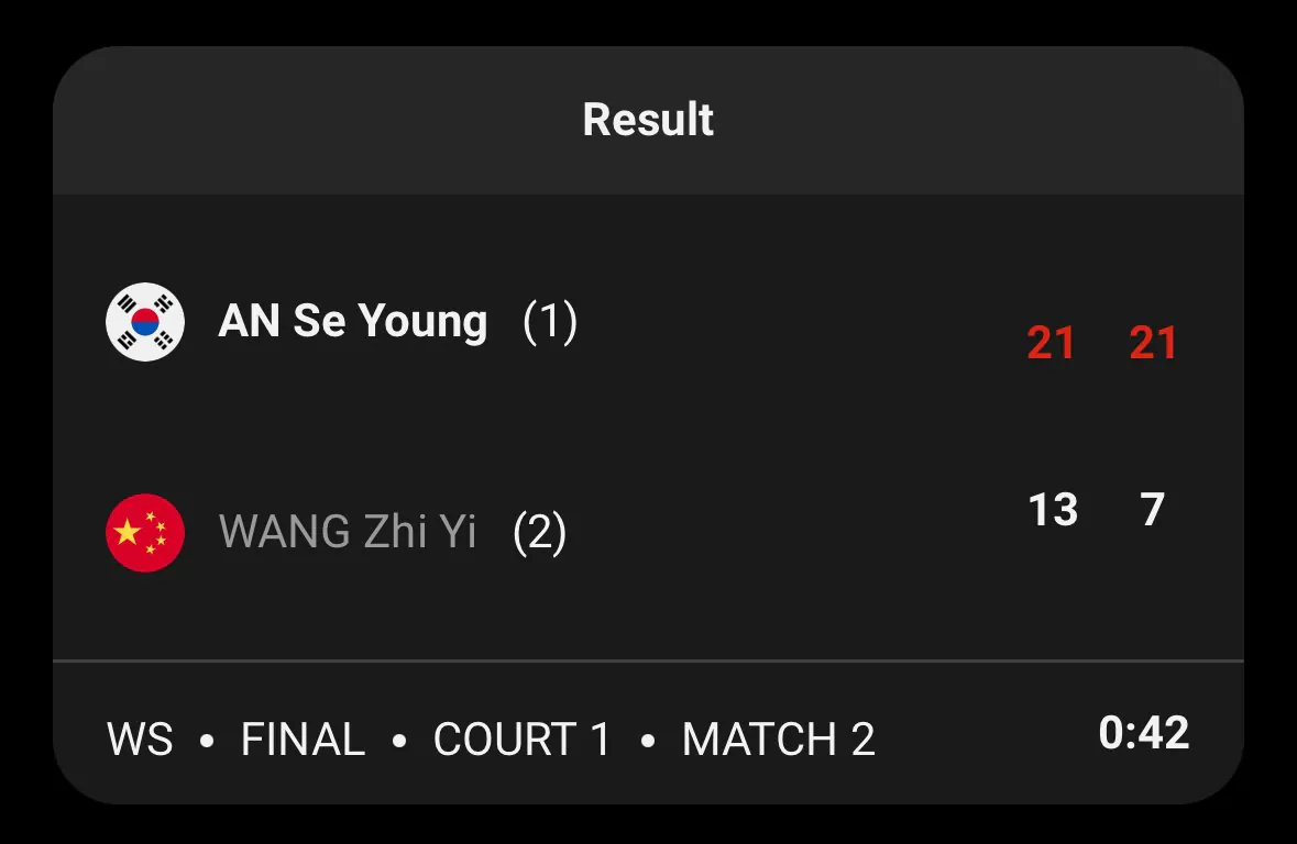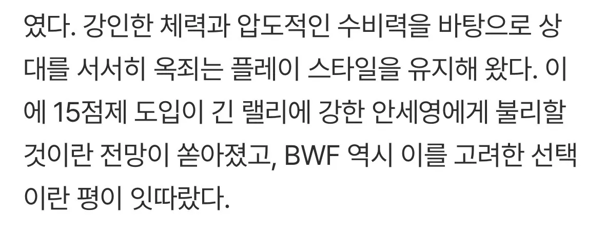 배드민턴 안세영 최근 공격력 근황 조회 0 | 댓글 0건 갓파 2시간전 공격력 물오른 지금 상대가 15점 따기 전에 경기 끝내버림 ??? : 15점제가 나한테 불리하다고?ㅋㅋ오히려 땡큐지 0