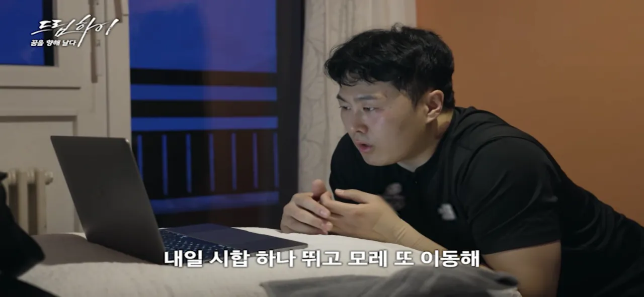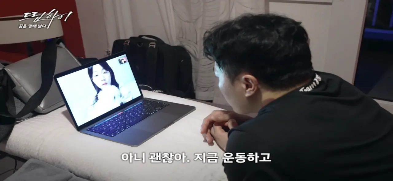 전지훈련 중 가족과 영통중인 김상겸 선수