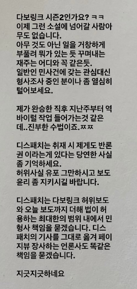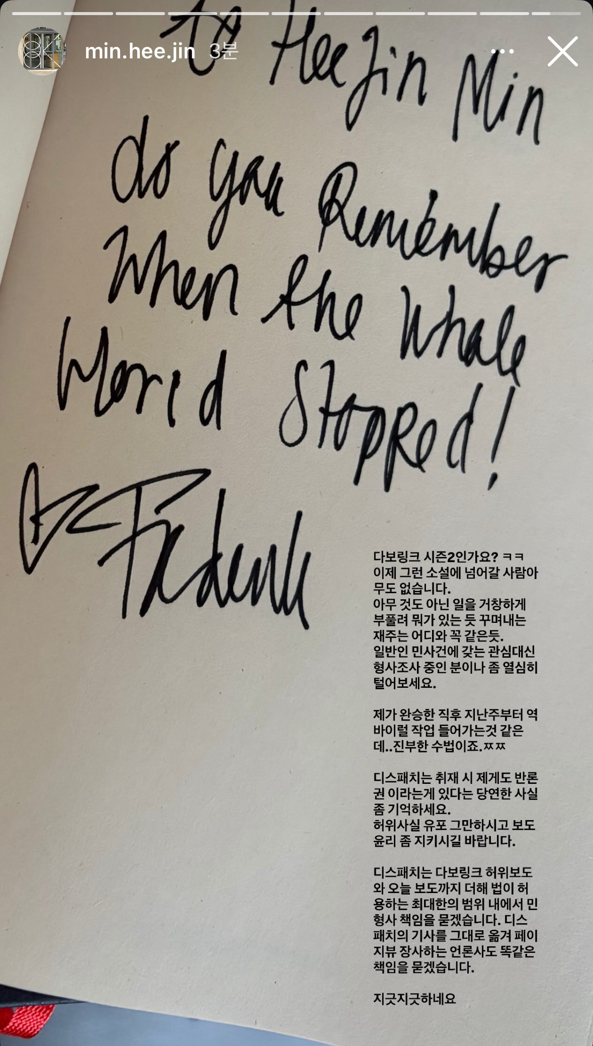 민희진 디스패치 루머 보도 법적 대응 예고 조회 0 | 댓글 0건 가자가자가자고 2시간전 아래 기사 관련인듯 https://m.entertain.naver.com/home/article/433/0000125319 0