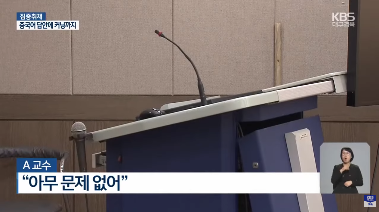 하지만 A 교수는 이번엔, 중국어로 시험을 쳐도 아무 문제가 없다고 주장했습니다.