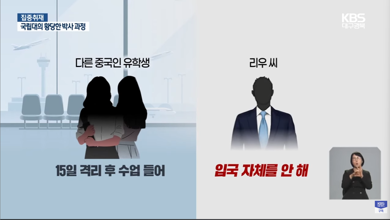 이번 사안에 대해 경북대 본부 측은 출석·평가 등 리우 씨에 대한 학사관리 전반이 적정했는지 여부를 조사 중이라고 밝혔습니다.