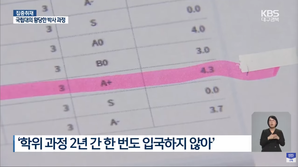 경북대학교가 국내 입국도 하지 않은 중국인에게 박사학위 36학점을 준 사실이 뒤늦게 확인됐습니다.