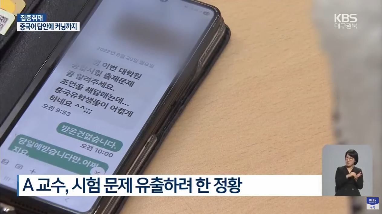 심지어 A 교수는 리우 씨를 위해 시험 문제를 유출하려 한 정황도 나왔는데, 2023년 리우 씨가 종합시험을 치기 위해 한국에 오기 전 문제를 미리 알려주란 문자를 조교에게 보낸 겁니다.