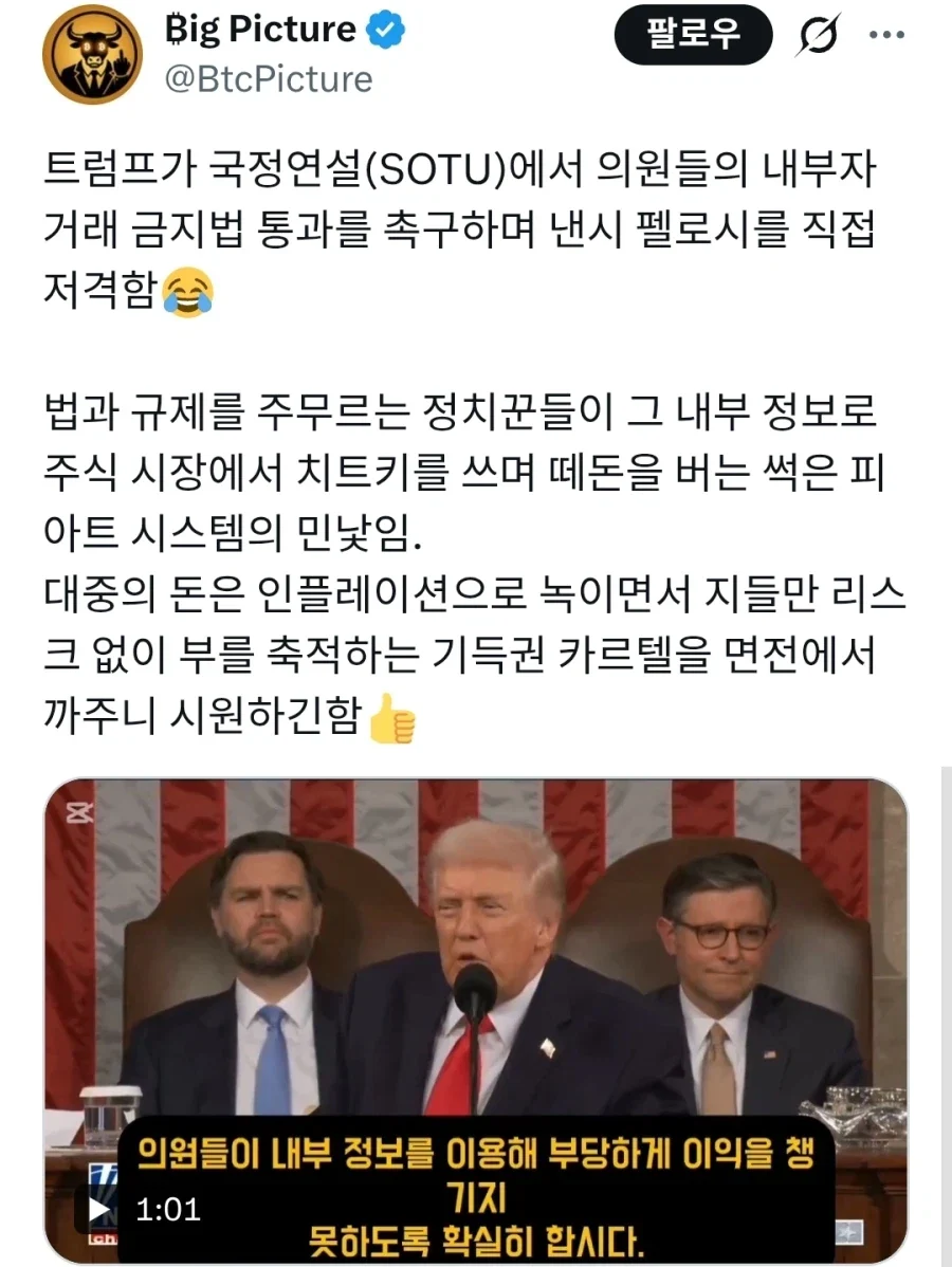 트럼프 "내부자 거래로 떼돈 버는 의원들 때려잡겠다"