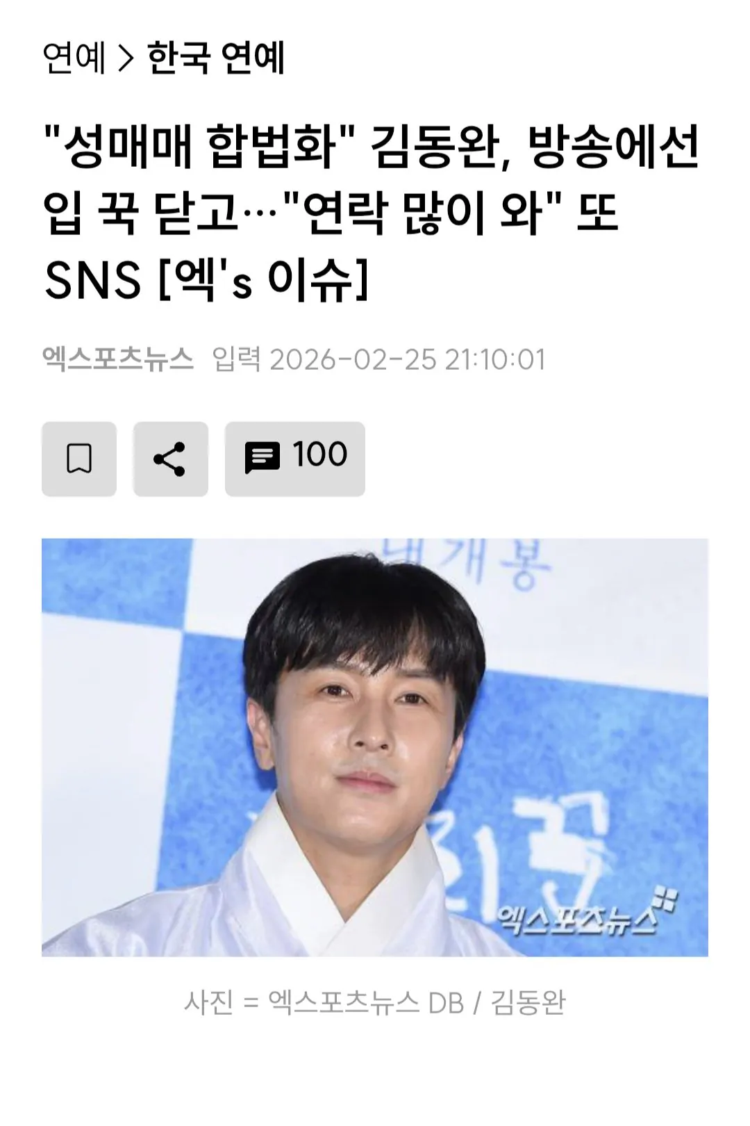 김동완 "성매매 합법화 발언은 하고싶은 말 한 것"