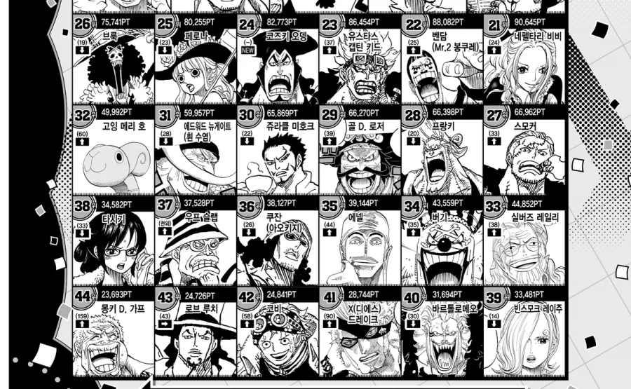 근데 원피스는 30~40위권대 라인업이 이 수준