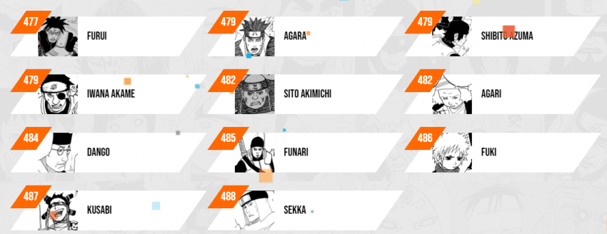 나루토는 488위 까지 있긴 한데 캐릭터수가 두배 이상 차이가 남