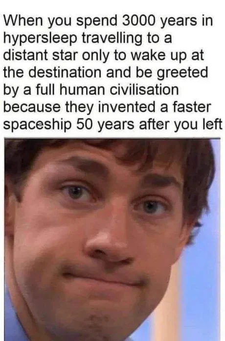 막상 도착해보니 나보다 50년 늦게 출발한 사람들이 더 빠른 우주선을 만들어서