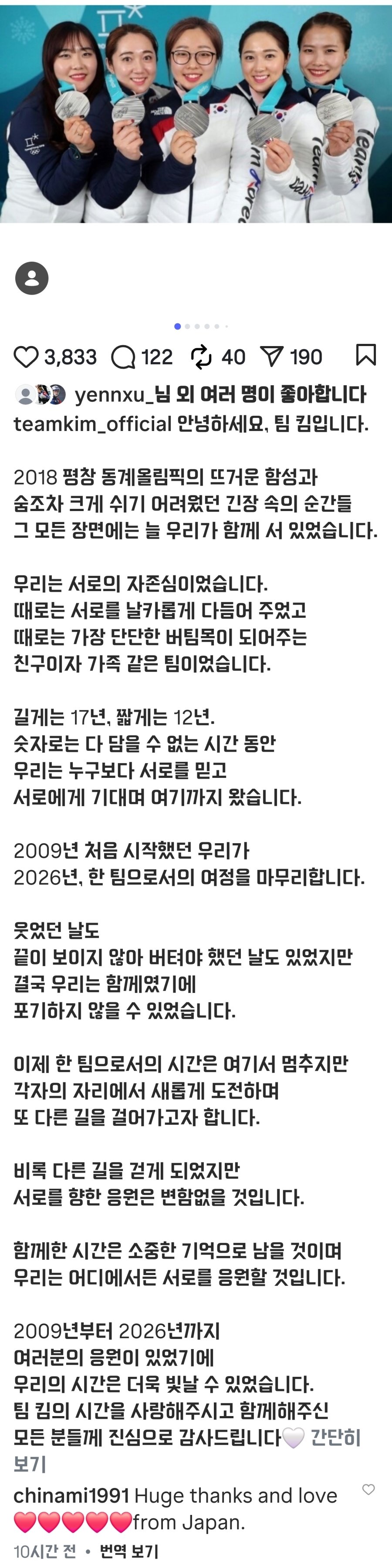 컬링 "팀킴" 해체 오피셜 뜸