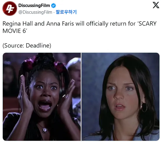 참고로 미국 커뮤에서는 이전작인 '무서운 영화 5'는 기존 제작진이 빠진 졸작이라서 '무서운 영화 4' 이후 20년 만의 신작 취급받고 있음ㅋㅋ