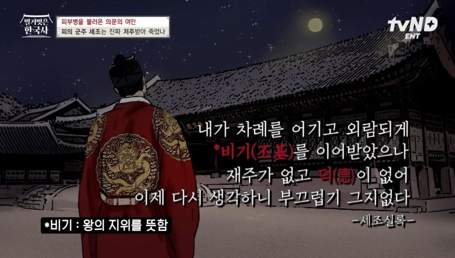 세조가 재위 말년에 남긴 말 조회 0 | 댓글 0건 드가쥬아 2시간전 끔찍한 피부병과 온갖 질병에 시달리며 죽음에 가까워지면서 함부로 왕위 빼앗았던 것에 대한 죄책감까지 커졌는지 저런 말을 남김 0