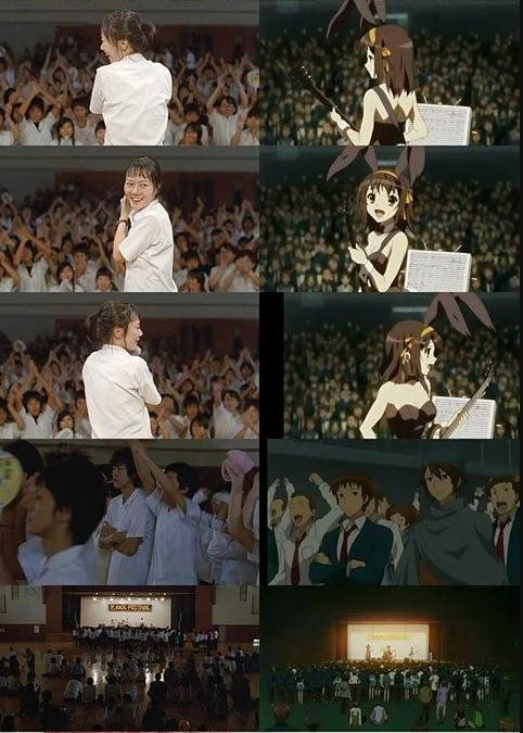 당시 씹덕계에 큰 파장을 일으켰던 애니인 '스즈미야 하루히의 우울'(2006) 에 상당 부분 오마주가 됨
