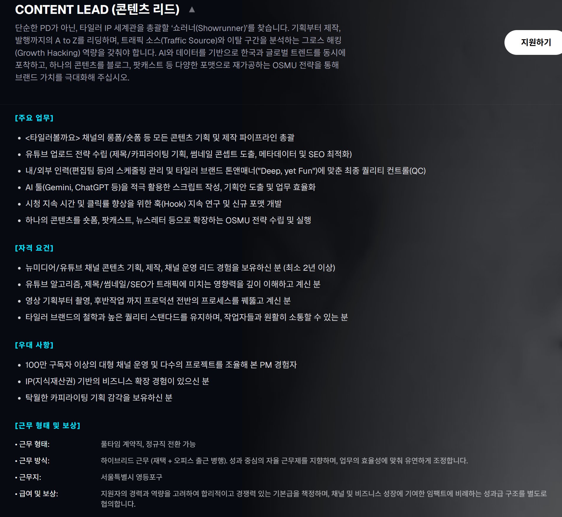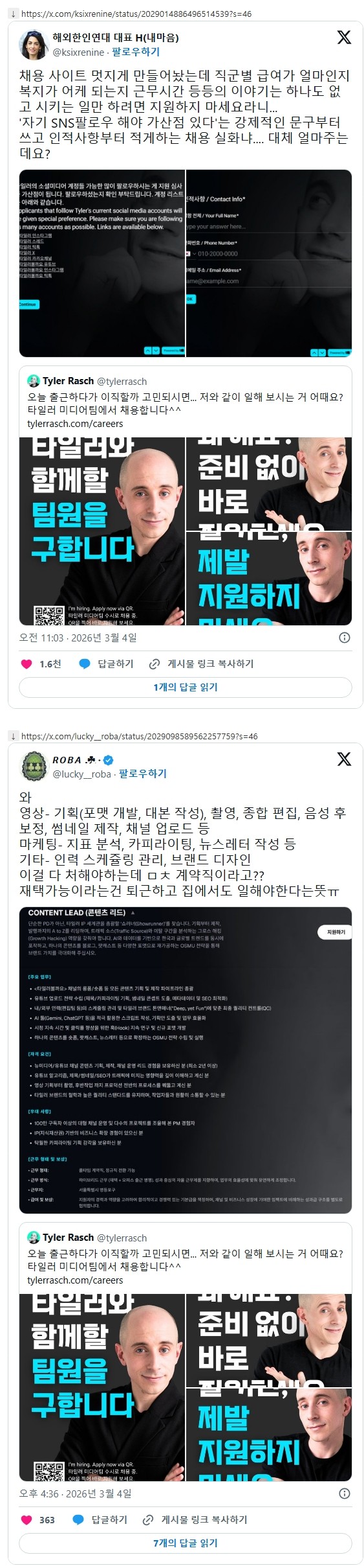 현재 말 나오는 타일러 채용 사이트
