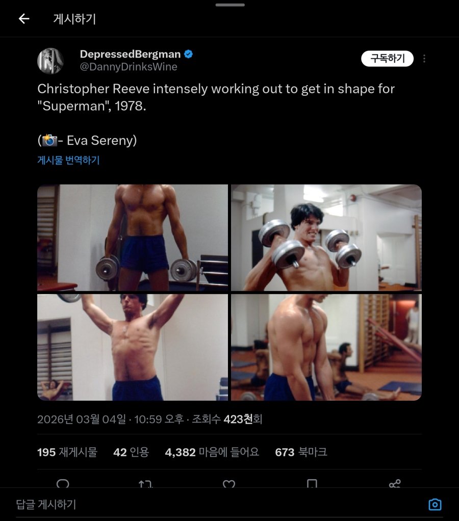 슈퍼맨 크리스토퍼 리브 희귀 사진