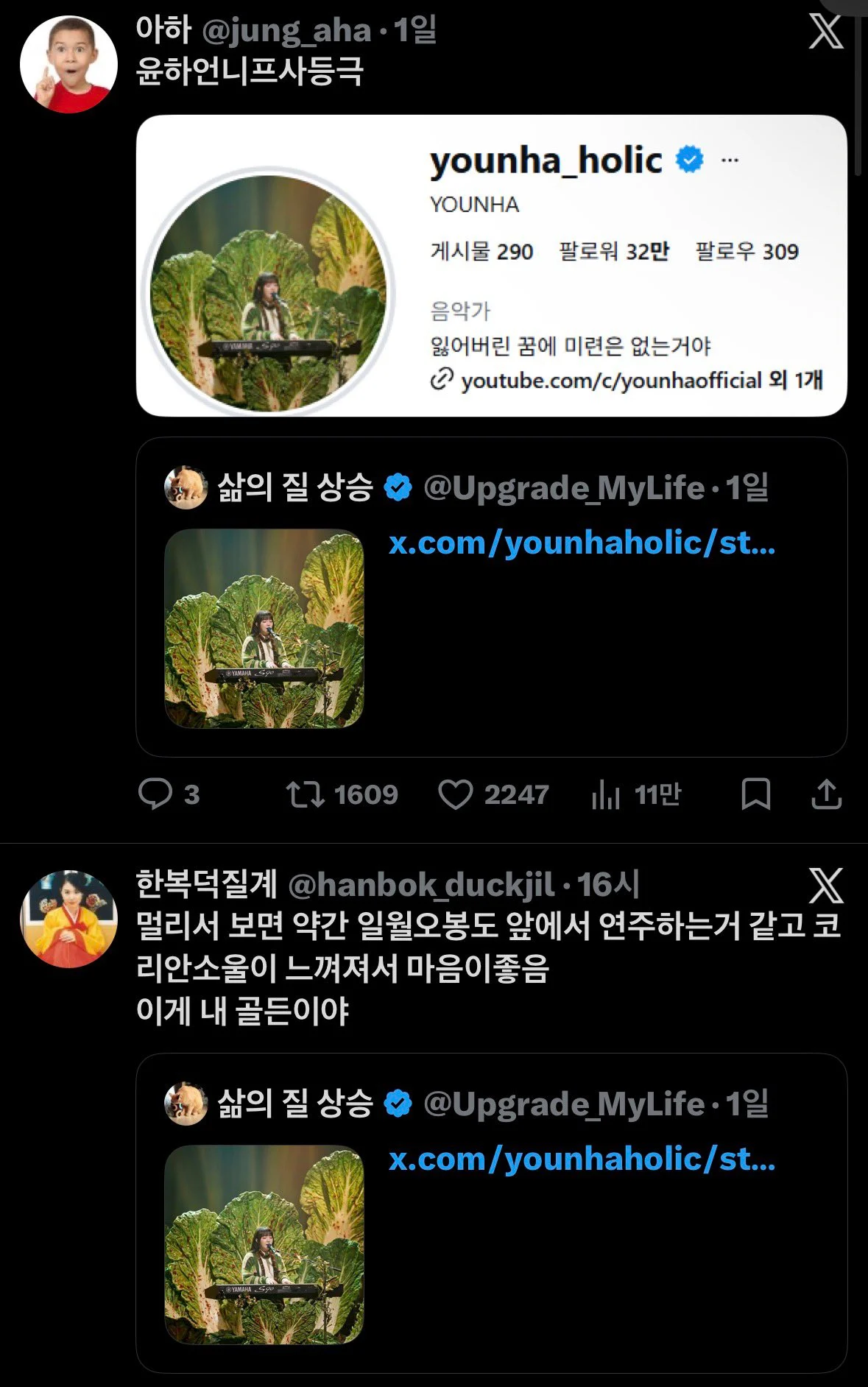 무대 의상이 봄동 비빔밥 같다고 존나 놀림받던 윤하