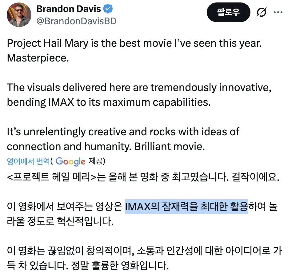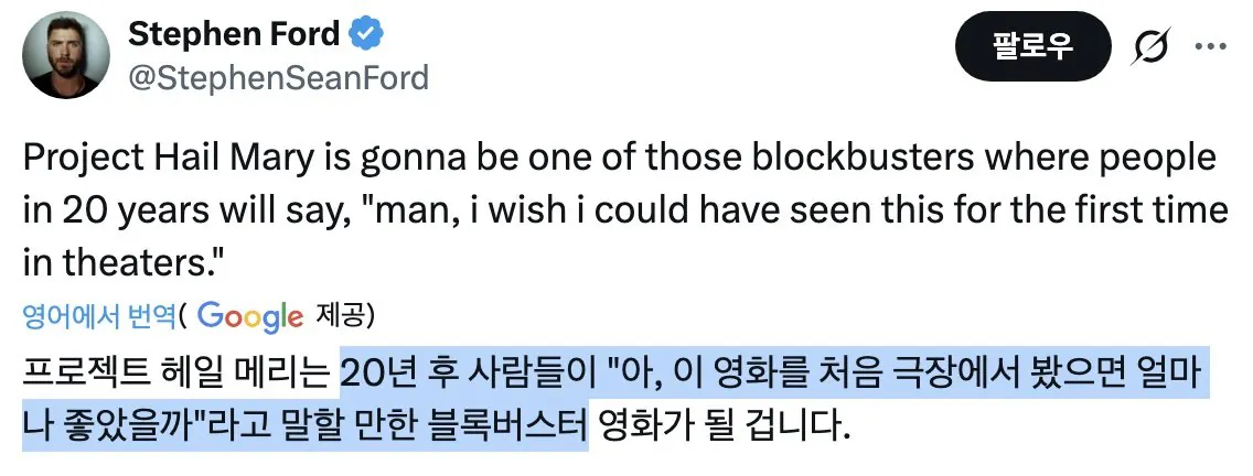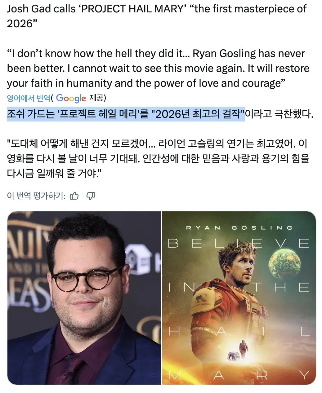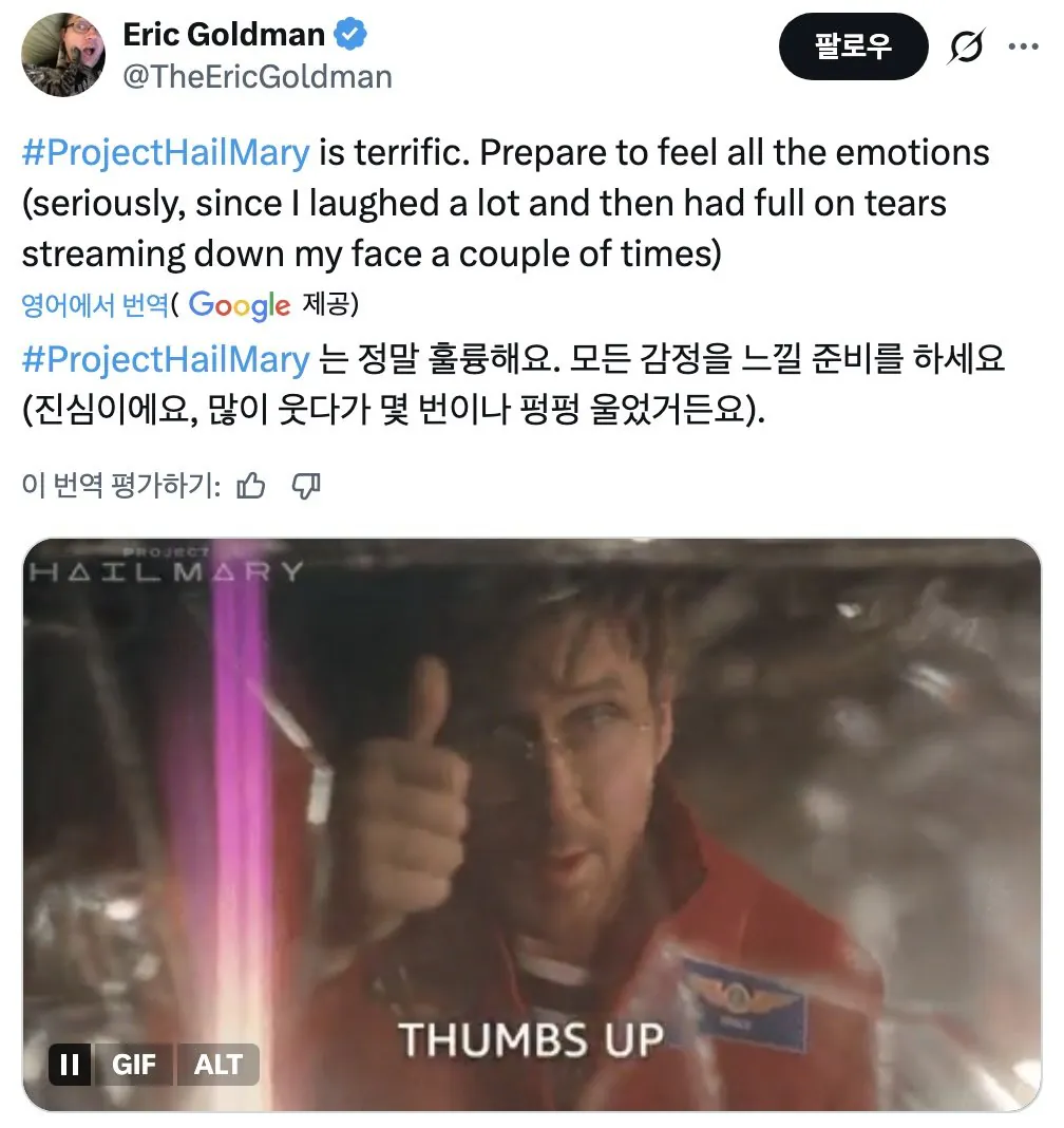 <프로젝트 헤일메리> 북미 첫 시사 반응