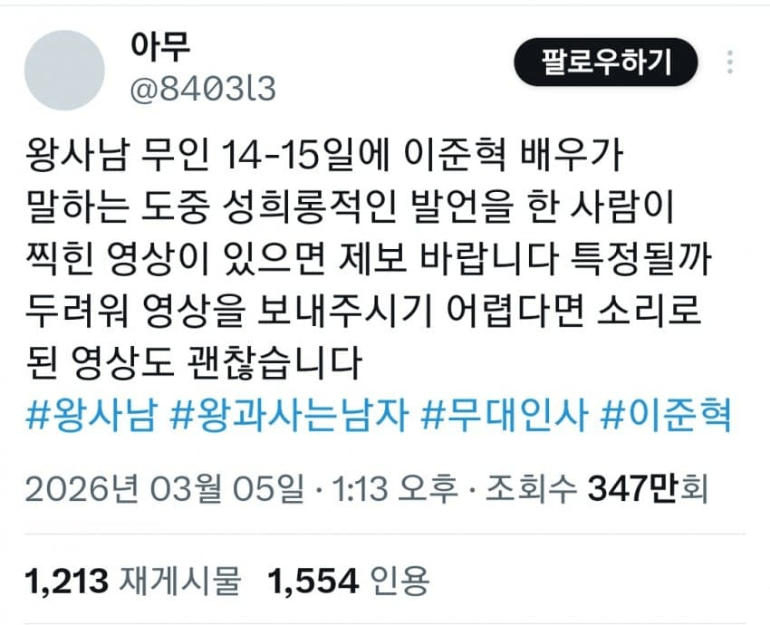 성희롱으로 난리난 "왕과 사는 남자" 무대인사