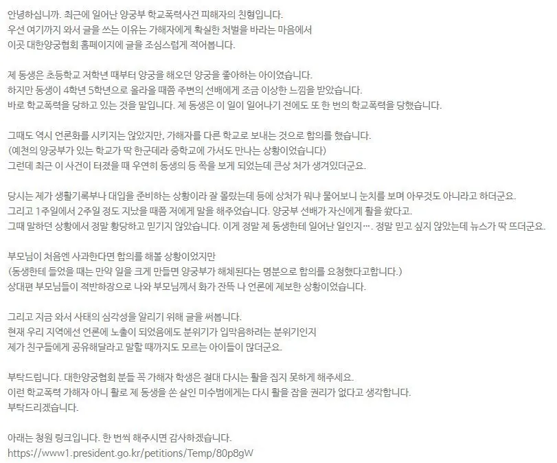 양궁부에서 학폭 일어나자 양궁협회가 한 일