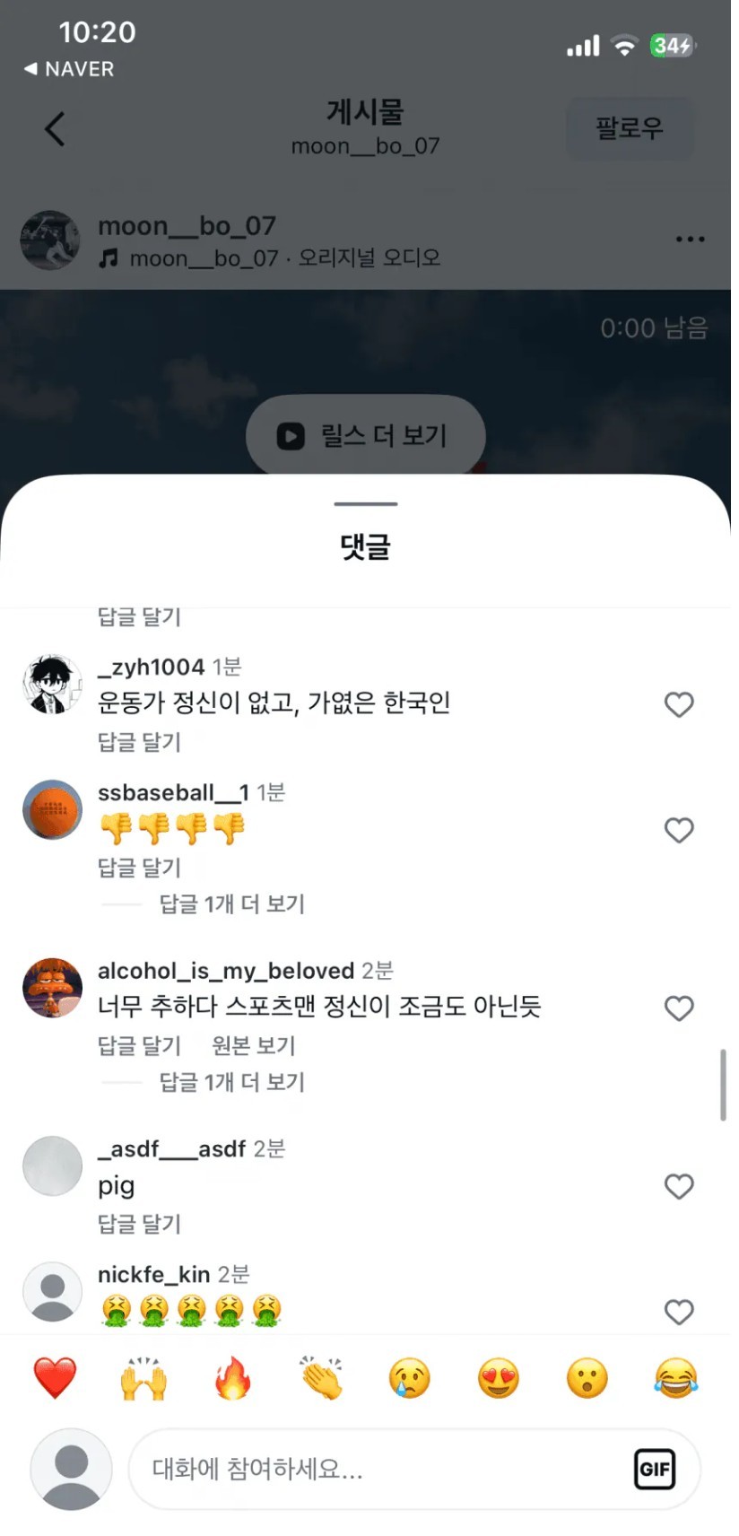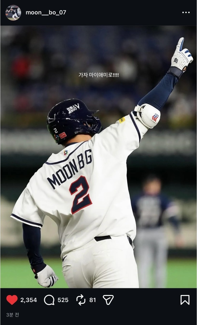 인스타 테러 당하고 있는 문보경 ㄷㄷ 조회 0 | 댓글 0건 개장수11 4시간전 대만 커뮤니티 문보경 마지막에 루킹삼진 당한거 점수 조절한거 아니냐면서 ㅂㄷㅂㄷ중 이유 : 한국이 8득점 이상하면 대만이 올라갈수도 있어서 고의삼진먹음 0