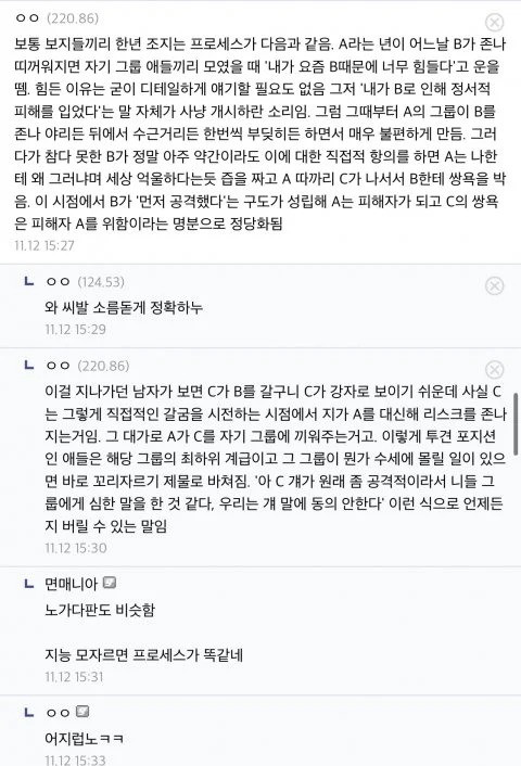 한녀들 정치질 프로세스