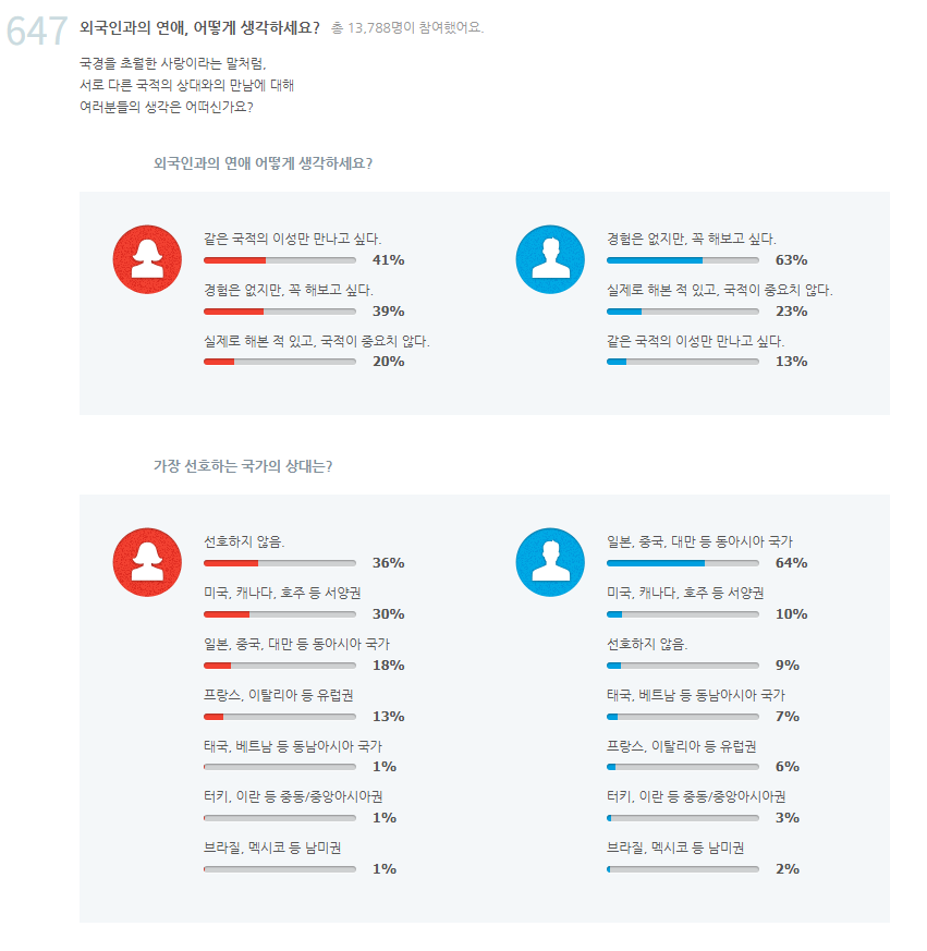데이팅어플이 조사한 한국남녀 국제,국내결혼 인식 차이