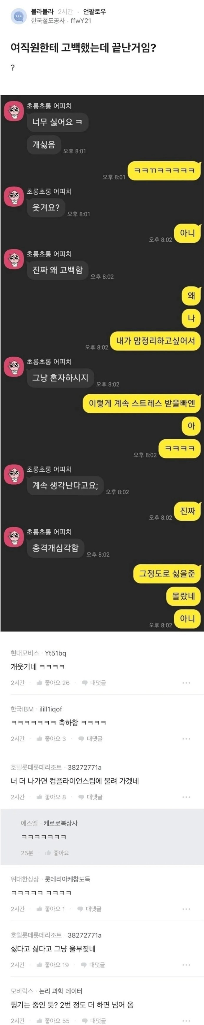 여직원한테 고백했는데 끝난거임??