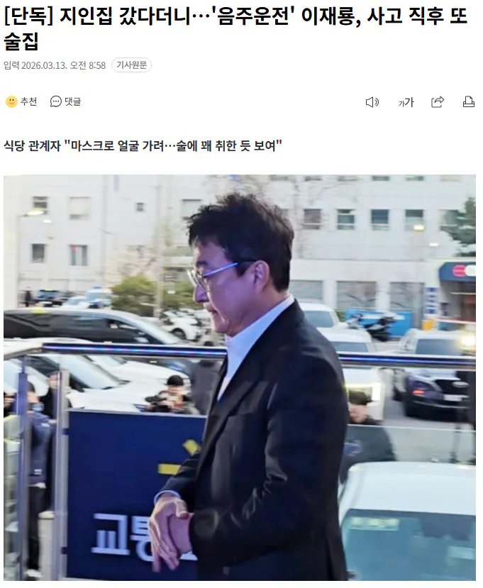 [단독] 지인집 갔다더니…'음주운전' 이재룡, 사고 직후 또 술집