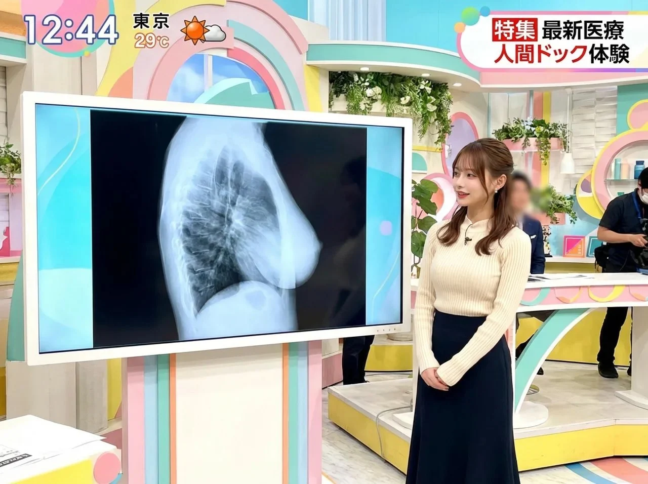 일본 예능 여자 아나운서 가슴 엑스레이 공개
