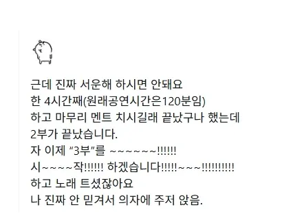 배우 김남길이 팬들에게 삐졌다는 팬미팅 썰 ㅋㅋㅋ 조회 0 | 댓글 0건 더한마음 2시간전 팬미팅 때 아직 못한 노래 6곡이 있는데 운영측에서 시간 문제로 잘라서 미안한 마음에 혹시 앵콜이라도 하지 않을까 하고 커튼 밖을 내다보니 팬들이 도망치듯 뛰쳐나가 실망했다고 함 사실은 2시간 잡혀있던 팬미팅 시간인데 신나서 수다떨면서 4시간 넘게 하느라 팬들이 지친거 진짜로 끝난건 5시간이고 끝나고 나니 밤 11시 반이라 차 다 끊겨서 팬들이 도망친거라고 핑계고에 나왔던 당시 팬미팅 후기들 ㅋㅋㅋ 0