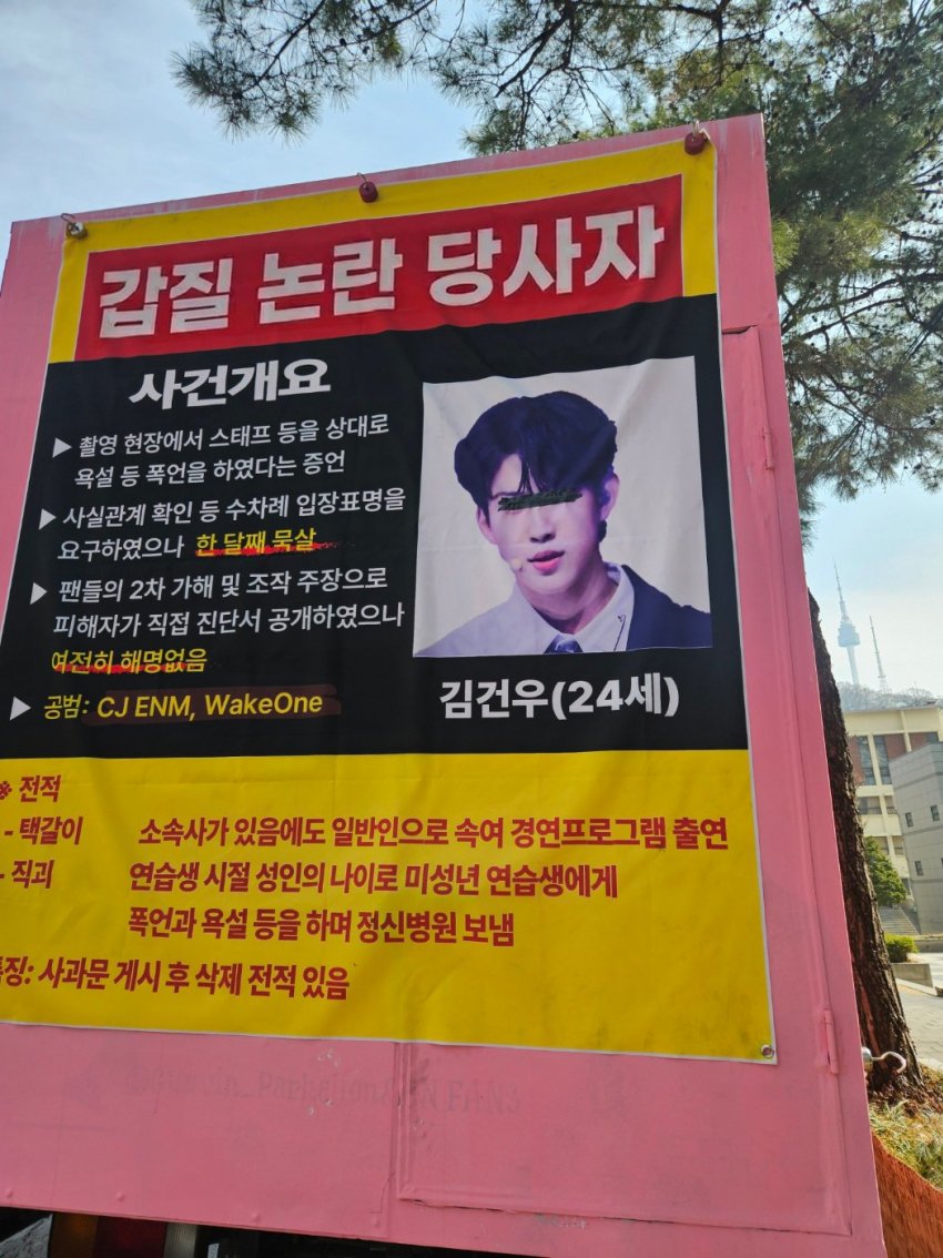 오늘 CJ 본사앞으로 간 트럭 뒷편에 붙어있는 현수막 내용