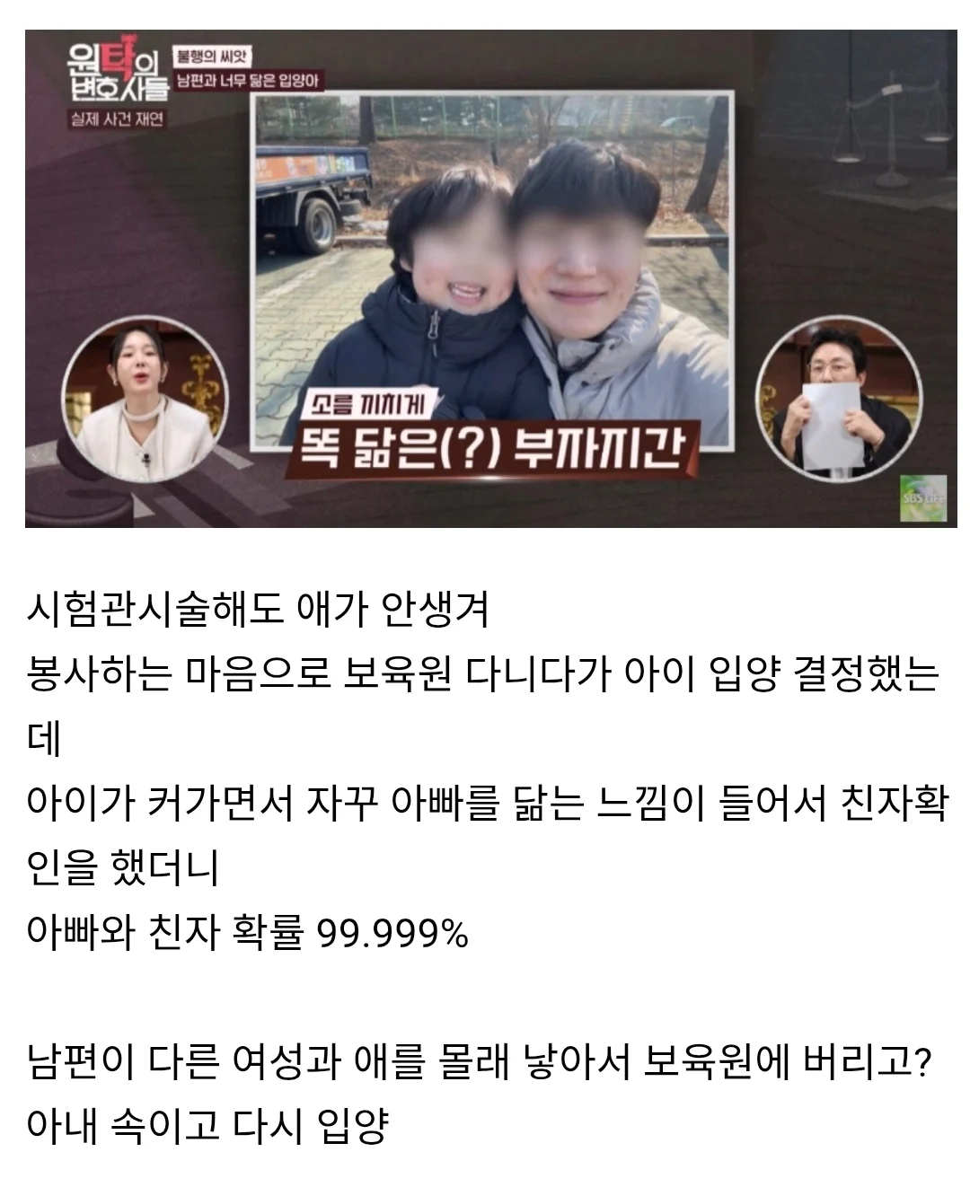 입양을 했는데 남편과 닮아가는 아이