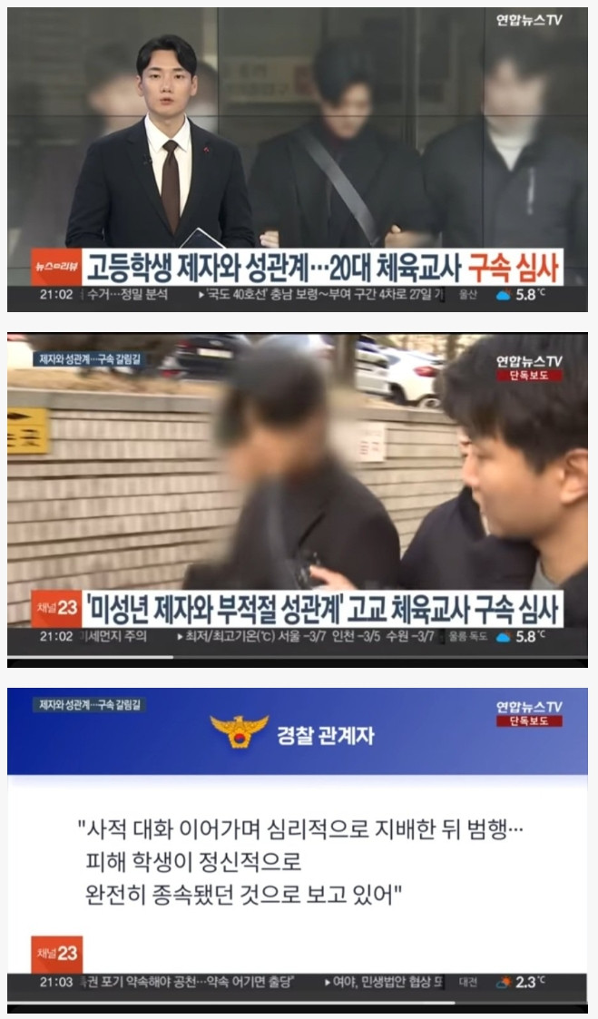 미성년자 제자와 성관계한 체육 교사 ㄷㄷㄷ