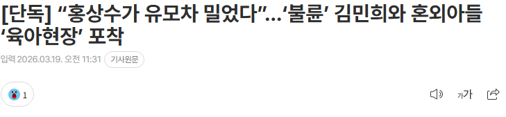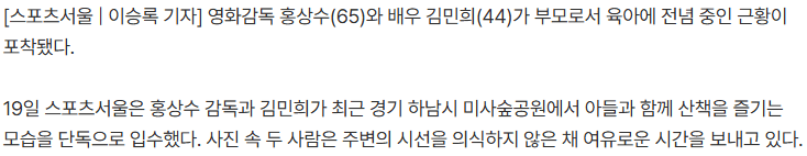 ‘불륜’ 김민희와 혼외아들 ‘육아현장’ 포착 조회 0 | 댓글 0건 개장수11 2시간전 https://m.entertain.naver.com/home/article/468/0001226311 0
