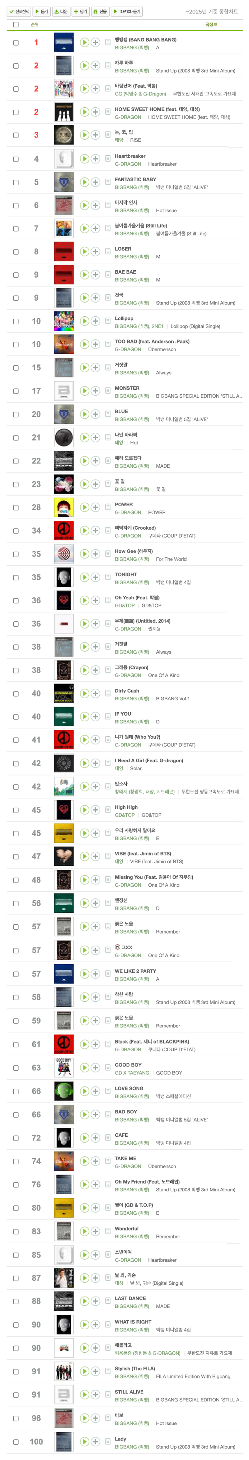 모아보니 더 놀라운 빅뱅 연간차트 모음
