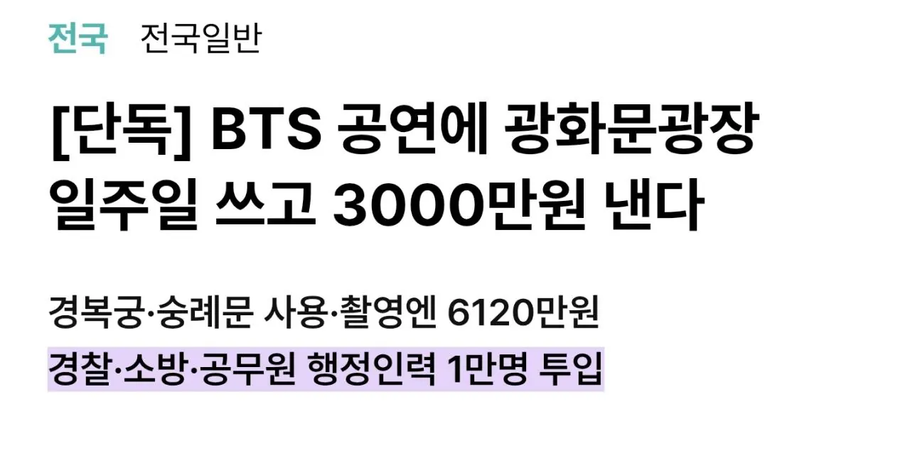 이번 방탄 공연에 하이브가 지불하는 사용료 조회 0 | 댓글 0건 개장수11 3시간전 https://www.hani.co.kr/arti/area/area_general/1250371.html#ace04ou 일주일에 단돈 3000만원ㅋㅋ 근데 투입되는 인력만 1만명.. 0