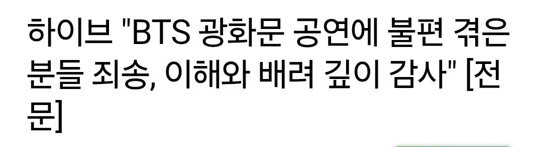 방탄소년단의 광화문 공연에 보내주신 성원과 배려에 깊이 감사드립니다.