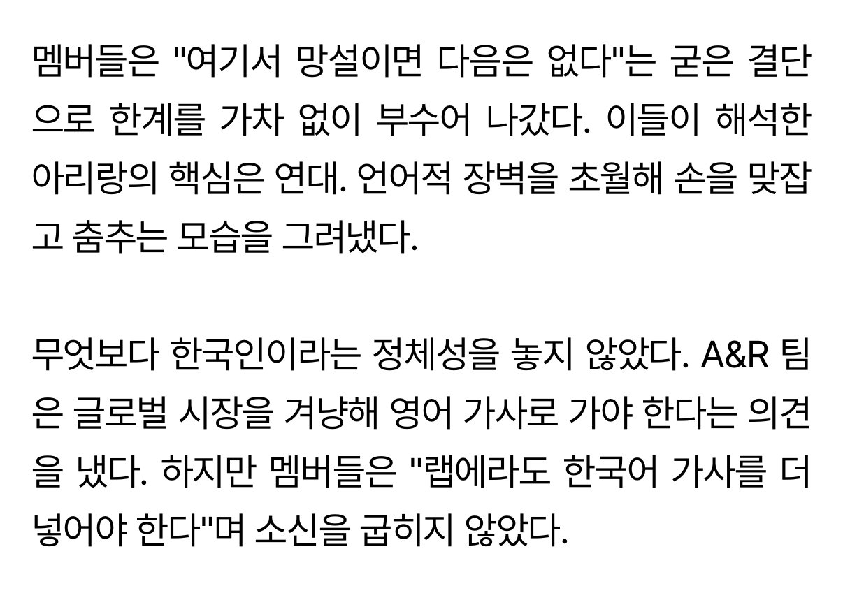 영어가사도 멤버들은 한글을 더 넣고싶어한듯