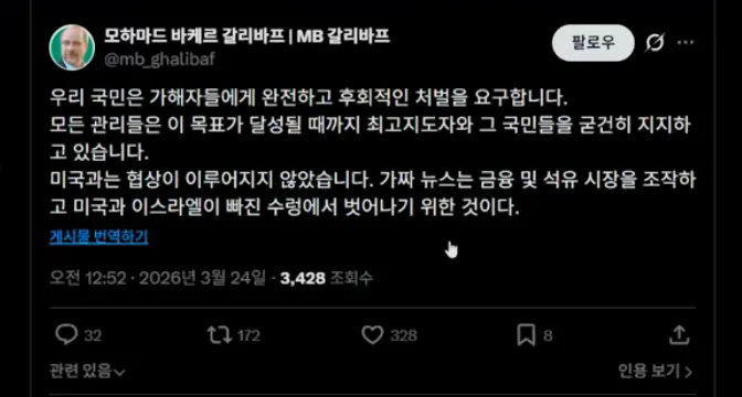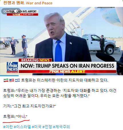 트럼프: 누군가와 전쟁 협상중이며 이란 비핵화 어쩌구 얻어낼거다.