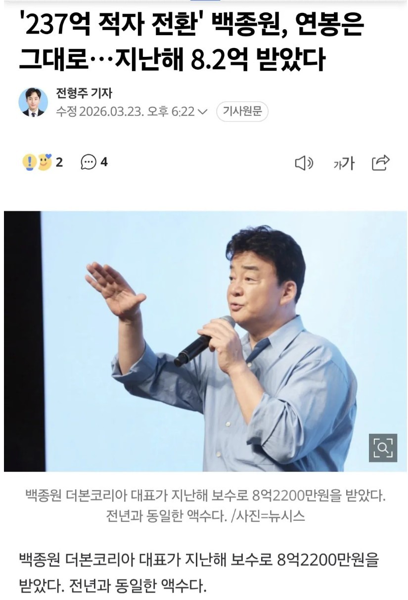 백종원 지난해 연봉 공개