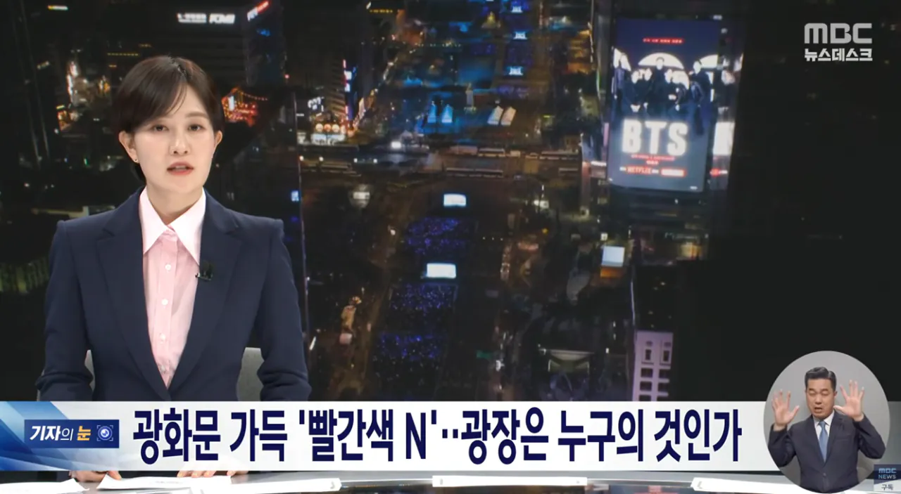 광화문 가득 "빨간색 N".. 광장은 누구의 것인가