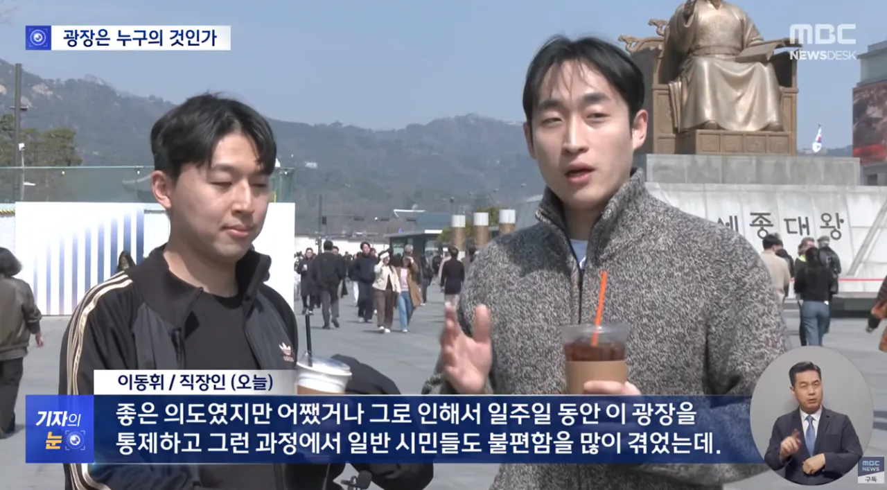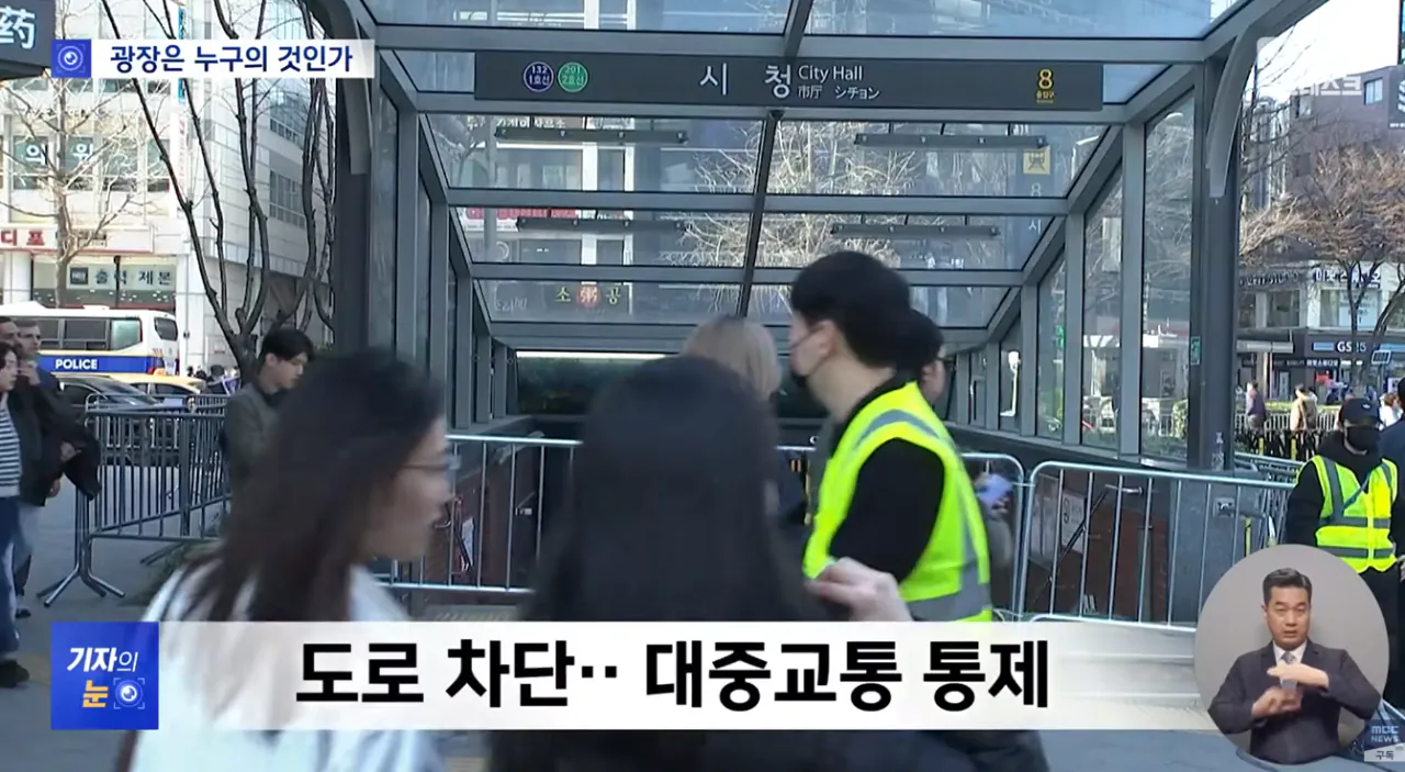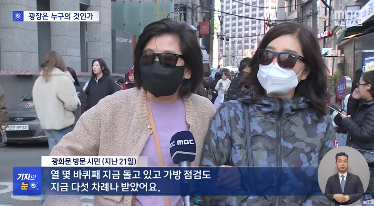 - 광화문은 모든 시민들이 자유롭게 오가는 곳이지만 안전을 위해 시민들은 통제되고 수시로 검문검색을 받음