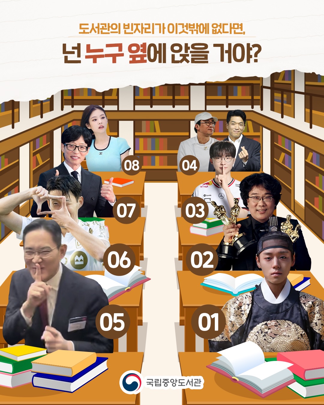 도서관 빈자리가 이것밖에 없다면 누구 옆에 앉을거?